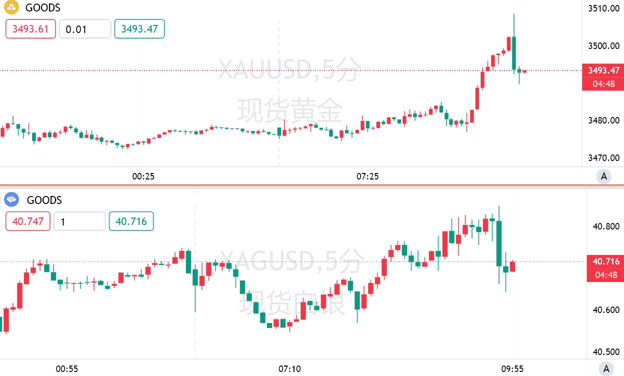 During Tuesday's Asian session, the global precious metals market once again demonstrated strong momentum. Spot gold prices briefly broke through their previous high, reaching a historic high of $3,500 per ounce, bringing their year-to-date gain to approximately $875. Despite a slight decline, the price remained at a high of $3,493.47 per ounce. Spot silver continued to trade above the $40 mark, closing at $40.716 per ounce in the Asian session.