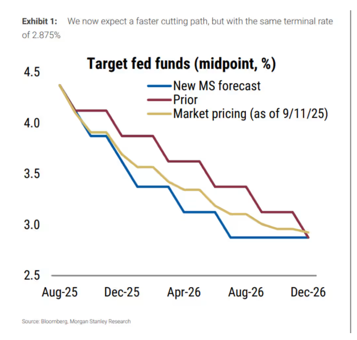 摩根士丹利:從“9 月按兵不動” 轉為“四次25 基點降息”,2025 年1 月追加降息以讓利率回歸中性。